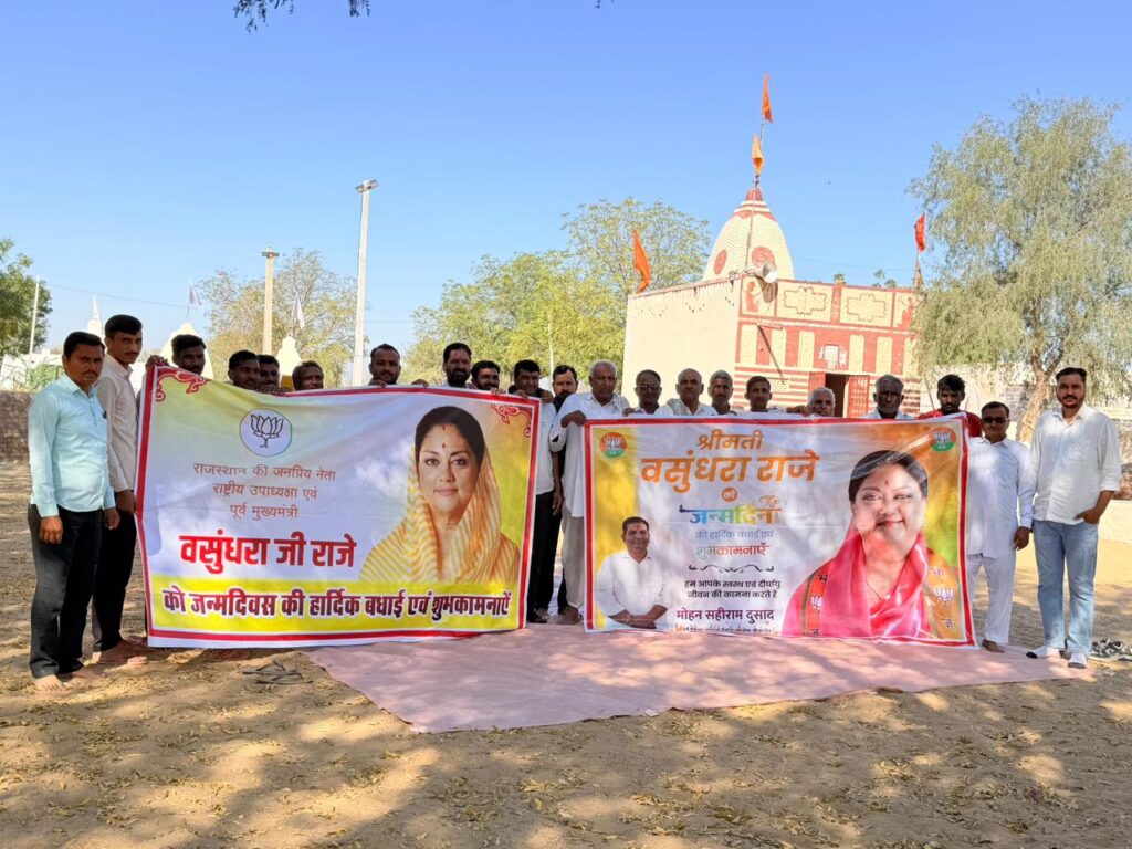 राजस्थान की पूर्व मुख्यमंत्री Vasundhara Raje के जन्मदिवस के अवसर पर सत्तासर गांव में धार्मिक व सामाजिक कार्यक्रम का आयोजन किया गया। इस अवसर पर स्वर्गीय सहीराम दुसाद के पुत्र मोहनलाल दुसाद के नेतृत्व में स्थानीय हनुमान मंदिर में हनुमान चालीसा का पाठ किया गया और पूर्व मुख्यमंत्री की लंबी आयु व स्वस्थ जीवन की कामना की गई।